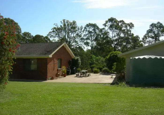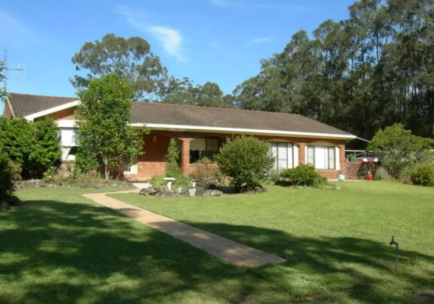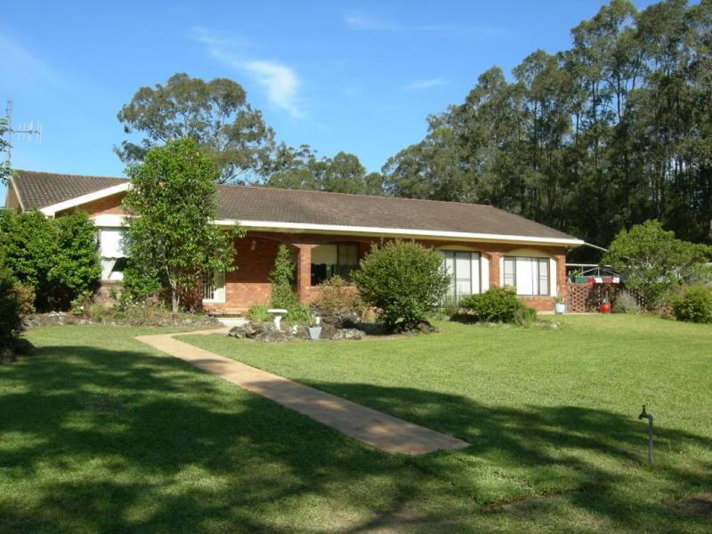 3 bedroom brick home, main with bay window, all have built in robes. Spacious formal lounge, timber kitchen, meals area, tiled floors. Sep self contained flat, 1 bedroom, lounge, dining, kitchen, bathroom. Double garage 10 x 8 with laundry, shower, wc, & office. Set on 15 parklike acres, gently undulating, with large dam, no neighbours, lovely paved BBQ area. Just 3 kms to town, 20 minutes to Forster beaches/shops/Taree. Available now. Property is for sale.