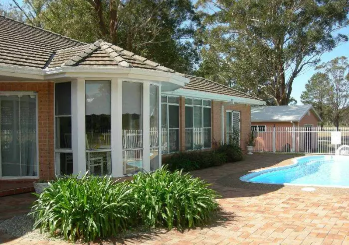 Huge brick and tile family home, with ducted air conditioning throughout, offering 3 bedrooms, all with walk in robes, ensuite to main bedroom with spa and study area or 4th bedroom. 3 way main bathroom located between 2nd and 3rd bedrooms. Formal lounge and dining rooms plus huge family room with cosy combustion fire and built in bookcases and display cases. Sunny meals area with bay window, tiled floor, chef’s kitchen with WI pantry, b/bar and sliding door leading to enormous paved, partly undercover, entertainment area with 9 x 4.5m sparkling IG pool. 3LUG with remote doors and BI cupboards. Extra 14 x 7m drive through garage, ideal for entertaining in wet weather. Aviaries and dog enclosures ideal for the pampered pets. Situated on a very pretty, immaculately maintained and almost level parklike 9 acres in prime location, with security gate, rezoned for rural residential 5/6 blocks. 15 minutes to Forster beaches and shops. Deceased estate, must sell. Urgent sale required. will rent $400 p.w. Reduced $150,000 for quick sale