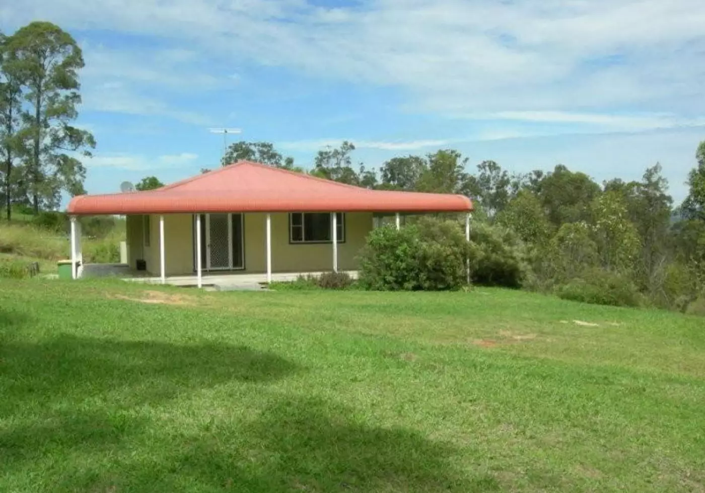 Delightful country style home just 6 years young with wide, bull nosed verandahs on 3 sides, steel frame and North East aspect with views across the surrounding countryside. Offering 3 good sized bedrooms all with BIR`s and main with ensuite. Open plan living area with 9’ ceilings, R/C air conditioning for all year round comfort and tiled floors for easy maintenance. Kitchen with B/Bar and Cnr pantry. DLUG C/Bond garage with concrete floor and power. Set on pretty and undulating 5 acres with 1 dam and divided into 2 paddocks. Very quiet and peaceful location. Just 3.5 kms from village of Krambach, 25 minutes to Forster beaches/shops or Taree. Suit retirees, 1st home buyers or investor.