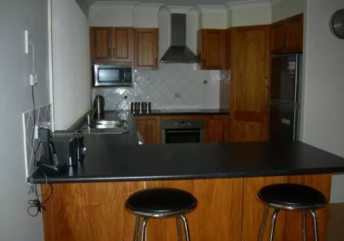 Kitchen 4 x 3.1, timber, B/Bar, D/W, R/C air con