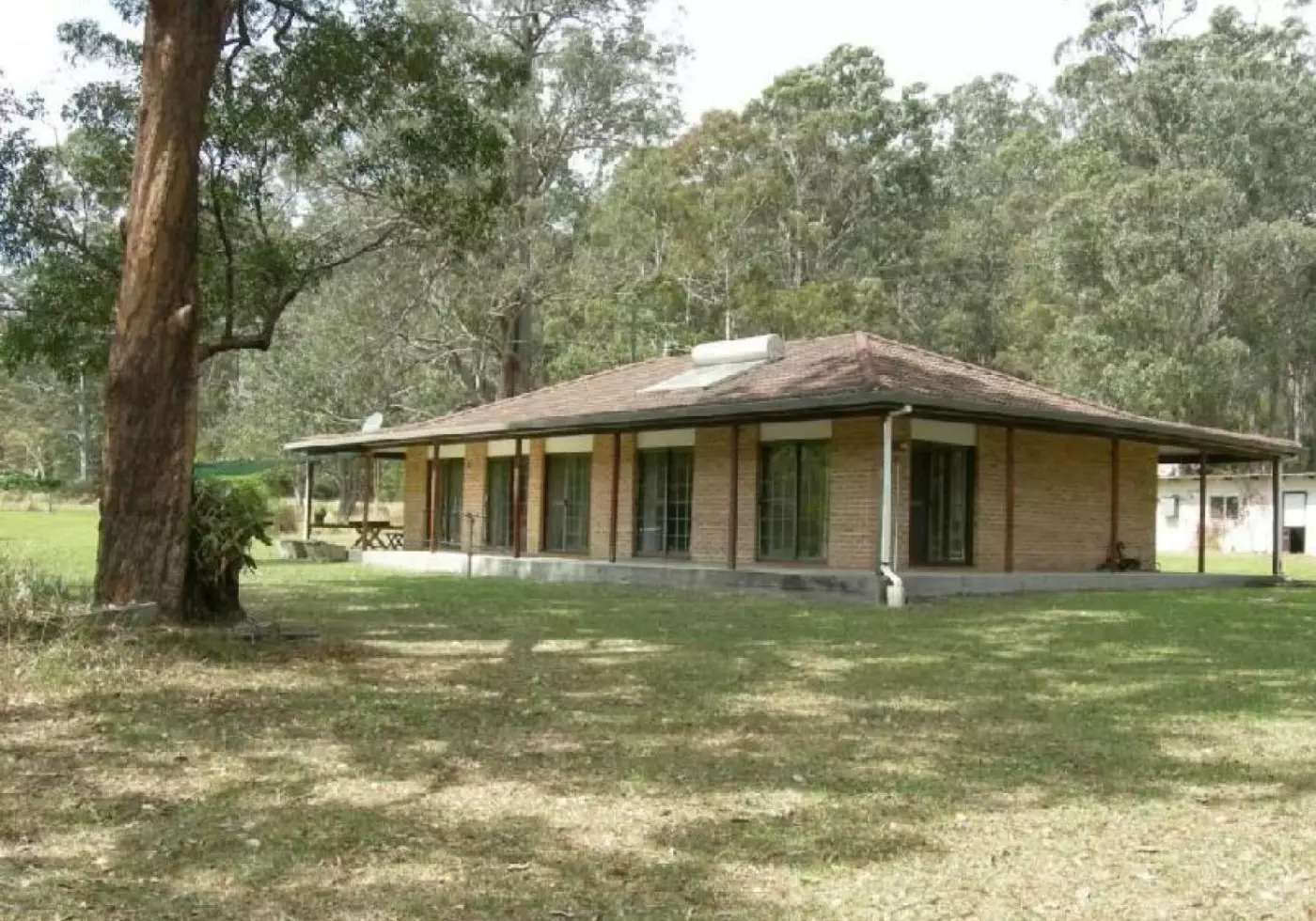 This is a steal, a brick home on acres for the price of a ¼ acre block in town. Lovely brick/tile ranch style home with sliding doors from all rooms leading to cool verandahs and capturing the breezes from all angles. Northerly aspect with solar HWS. Offering 3 good sized bedrooms, main with BIR.3 way bathroom, needs some tiling. Timber kitchen and informal meals area. Separate dining room and separate lounge with cosy combustion fire. 9` ceilings add to the feeling of space and light. Double garage/workshop all set on very private 17 acres, very gently undulating, adjacent to the forest with 2 dams and small creek. Just 20 kms Taree and 30 minutes to Forster beaches/shops.