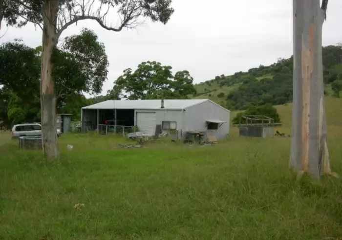 108 acres of gently undulating country 90% cleared with selected shade trees & 5 dams plus small seasonal creek. Good pasture consisting mainly of Kikuyu, clover, Rhodes & Paspalum grasses. 5 bay shed 15m x 7.2m, positioned well back from no through road ensuring peace & quiet & total privacy. 2 bays set up for weekend accommodation with water, power, cosy combustion fire, gas HWS & kitchen. 3 open bays for farm equipment. Set within house paddock of approx 4 acres all dog/goat fenced ready to build your dream home surrounded by magnificent scenery. Huge chook pen with water & power. Second 3 bay farm shed adjacent to yards. School bus 500 metres away & just 17kms from highway & 30 mins to Forster/Taree.