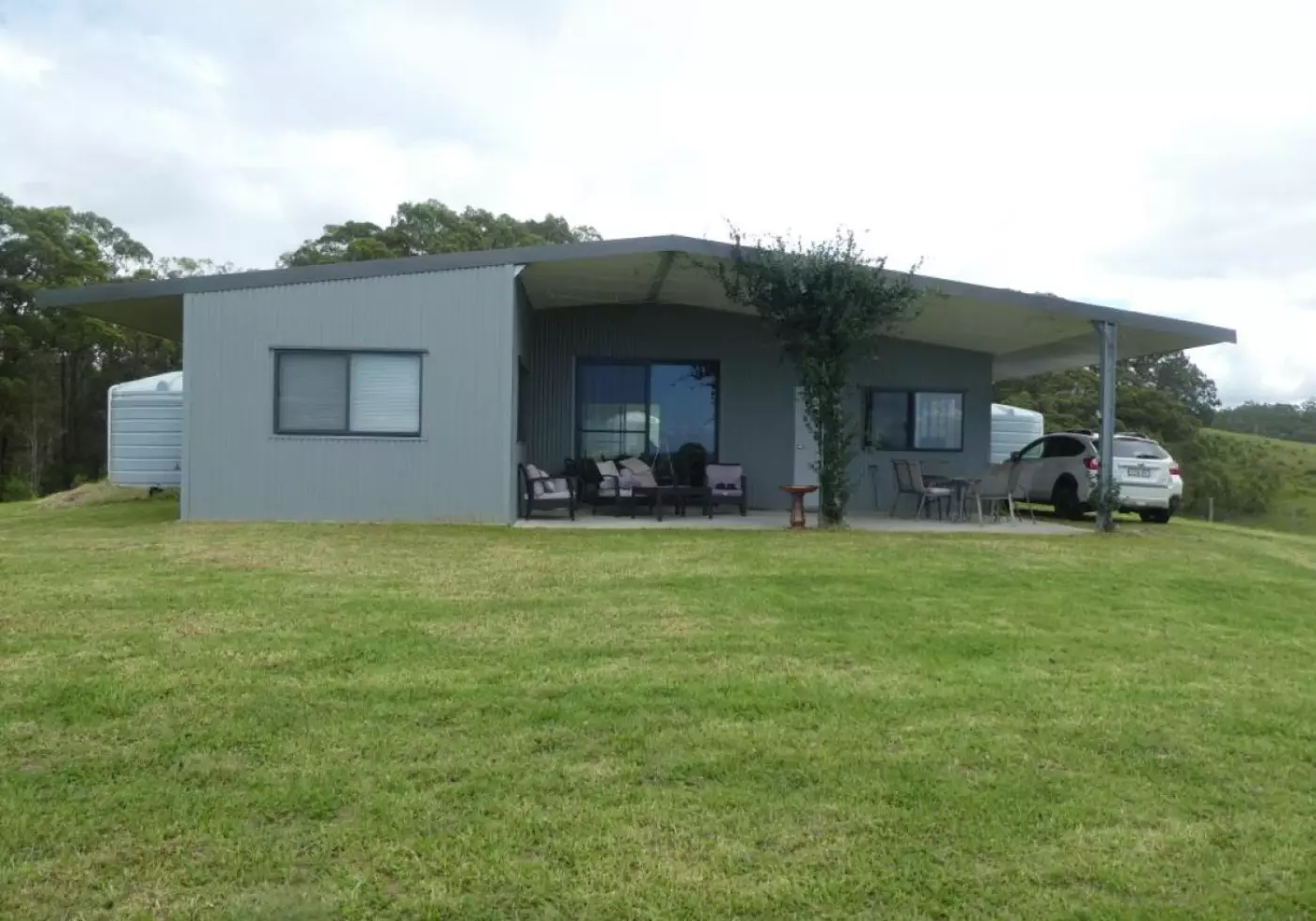 The most amazing views await you as you drive up the hill, from Tallwoods, to Cape Hawke at Forster and down to Buladelah. This very comfortable temporary accommodation 20m x 10m, Colorbond "Shouse" is fully lined with power, water and septic connected. Offering 3 big bedrooms, open plan living, lounge with combustion fire and verandah front and back. Set on 40 acres, gently undulating to hilly and steep natural bush approx 1/2 cleared with 4 dams, and highway access. Original homestead in need of serious TLC. Zoned RU1 primary production. Make great weekend accommodation, live in while building your dream home or have the accommodation approved as a home and build another shed (STCA) 15 minutes to Forster, 1 hr 40 minutes to Newcastle, 3 hrs 10 minutes to Parramatta