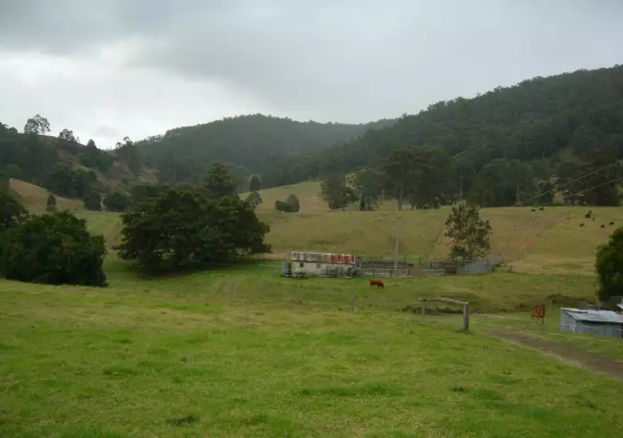 150 ex dairy acres approx 50% cleared with original dairy, power, cattle yards and machinery shed ideal as temporary accommodation while building your dream home. Fenced into 4 paddocks with 5 dams, creek flats to hilly & steep country with millable timber, rare Red Cedar trees, staghorns and bush orchids. Good clean country, predominately Kikuyu pasture, will carry 30 head. Just 8 kms to the village, 21 kms to the highway.