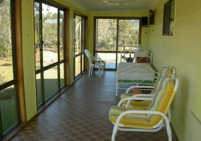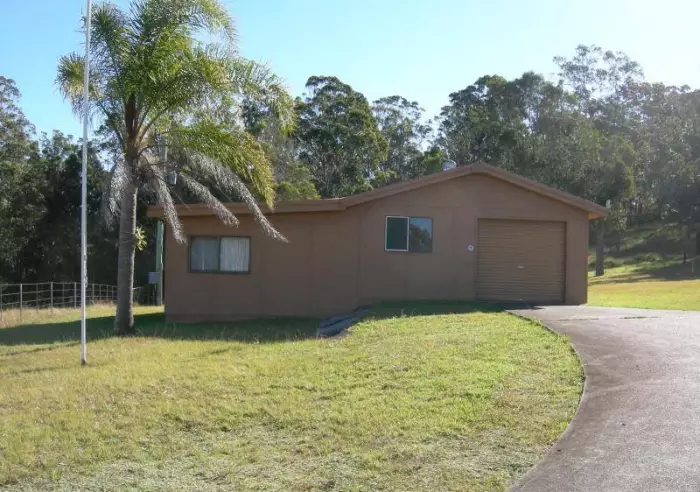 Sick of the rat race? Then this is for you. Set well back off the road for privacy and mountain views with 2 solar gates is this comfortable older style home with 8' wide fully tiled verandahs on 3 sides and solar HWS. 2 good sized bedrooms one with big picture windows, BIR, R/C air con and fan. Plus large sunroom with tiled floor easily converted to another bedroom. Lounge/dining area with R/C air conditioning, older style kitchen with B/Bar and tiled floor. Double garage, laundry attached with extra shower and wc plus 2 room teenage retreat or games room. 2 big dams one with pump and extensive underground irrigation to house paddock. Chook pen, stables, 2 bay open shed and BBQ. Set on gently undulating 15.4 acres, fenced into 2 paddocks all cleared with 2 big dams, billabong, small section of rainforest, good pasture just 2.5 kms off highway, bus at door.
