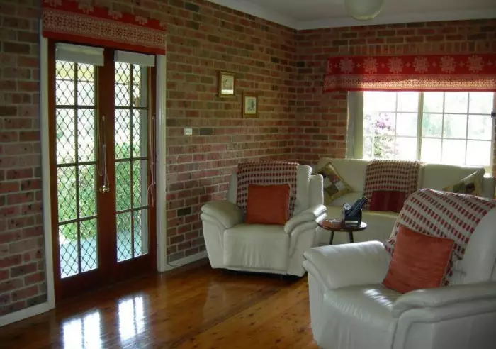 Lounge 7 x 3 French doors, brick/timber feature, R/C air con