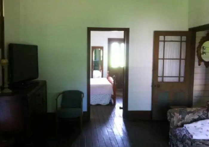 2nd bed 3.66 x 3.66 timber floor, pressed metal ceiling, French doors