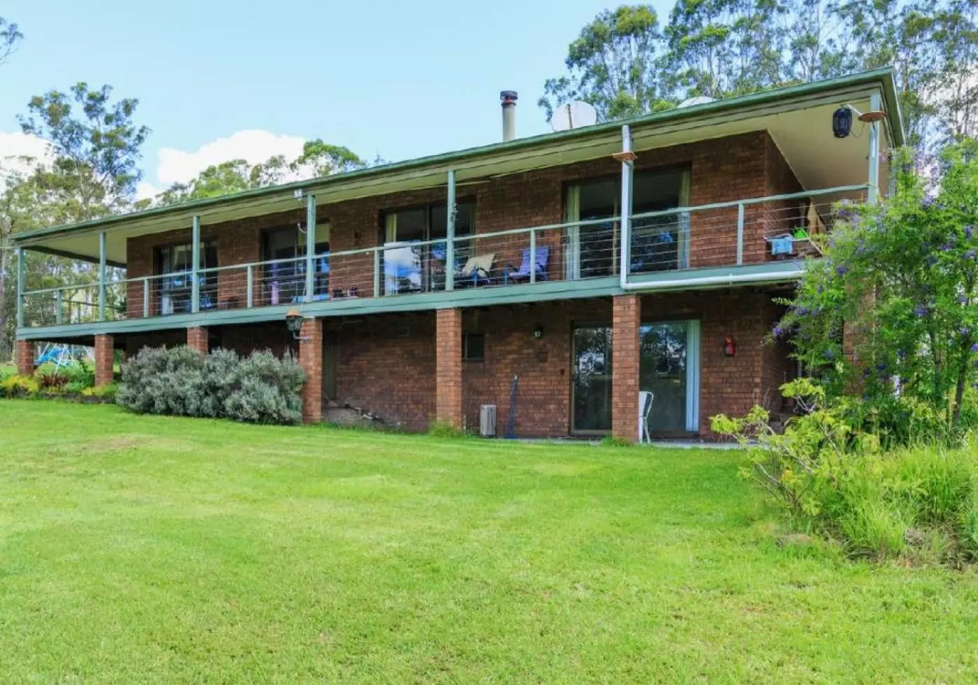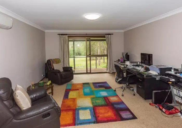 Very comfortable 4 bedroom brick home with verandahs on 4 sides & NE aspect set well back from the road ensuring peace & quiet plus privacy. Main bedroom with tiled floor, BIR and ensuite. Plus 3 good sized bedrooms all with BIR's.& fans. Separate lounge with cosy combustion fire, fan & R/C air con plus sliding door leading to front verandah with rural views. Separate dining room plus sliding door leading to rear verandah. New kitchen with D/W & adjoining the family room with cork flooring, R/C air con & sliding door leading to front verandah. Downstairs has lots of space under the home for extra storage or extension. Big 4 bay open shed 14 x 7 with power, dble garage with roller doors 7.5 x 7 with power & concrete floor plus caravan port. 50 solar panels ( 12.5 kw) system (400 ah lithium battery bank) means NO electricity bills ever. Set on gently undulating 25 acres approx ½ cleared fenced into 3 paddocks with 2 dams, chook run & veggie patch. Satellite TV, NBN connected plus school bus at door. Ideal for young family wanting to get away from the rat race or great holiday home with no close neighbours. 20 minutes to Coolongolook & highway, 30 minutes to Nabiac, 45 minutes to Forster beaches/shops. Zoned RU1 Primary production.