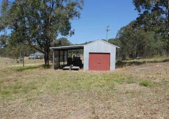Great weekend getaway property of 113 acres, partly cleared, undulating to steep country just 13 kms from the highway. Fabulous home site, northerly aspect, extensive rural views, power and transformer ready to connect. New Colorbond shed 12m x 8m with concrete floor and workshop area plus 22,000L water tank. Tucked away further up the hill is a very comfortable caravan with cyclone roof, 1 bedroom, kit/din area, shower, plus attached annexe on a concrete slab with comb.fire, verandah and the most amazing views. Double road frontage with your own private quarry on one boundary and small dam. Suit weekend escape from the city or temporary accommodation while building your dream home. Ideal for a couple of steers, a pony or two, chooks etc. Bus at door, 5 kms Krambach, hotel, pool, post office, service station and 13 kms from the highway, 25 minutes Forster beaches, 25 minutes Taree, 3 hours Parramatta.