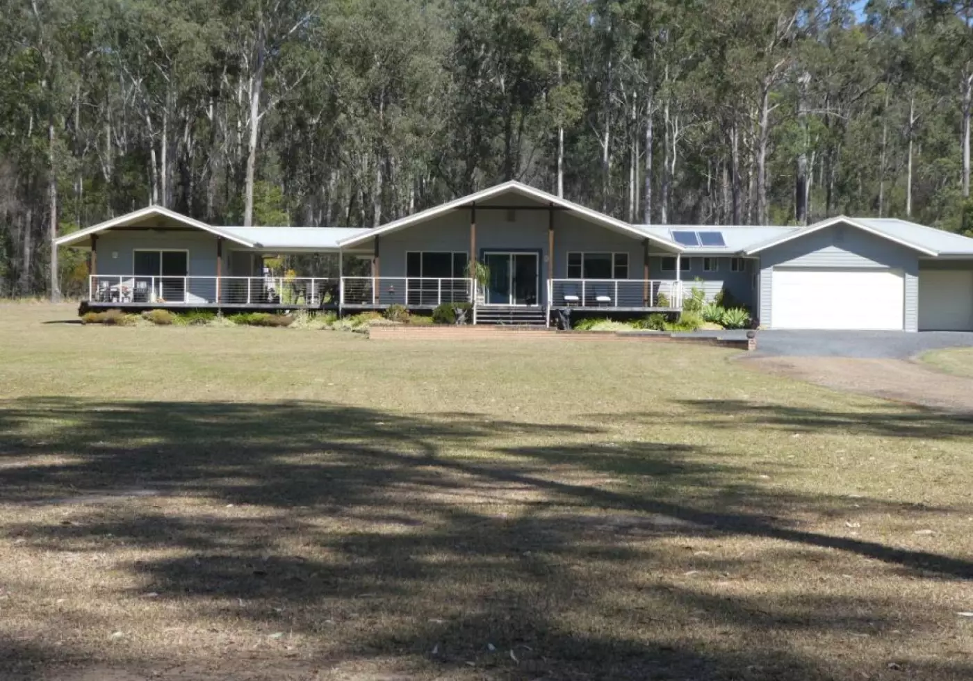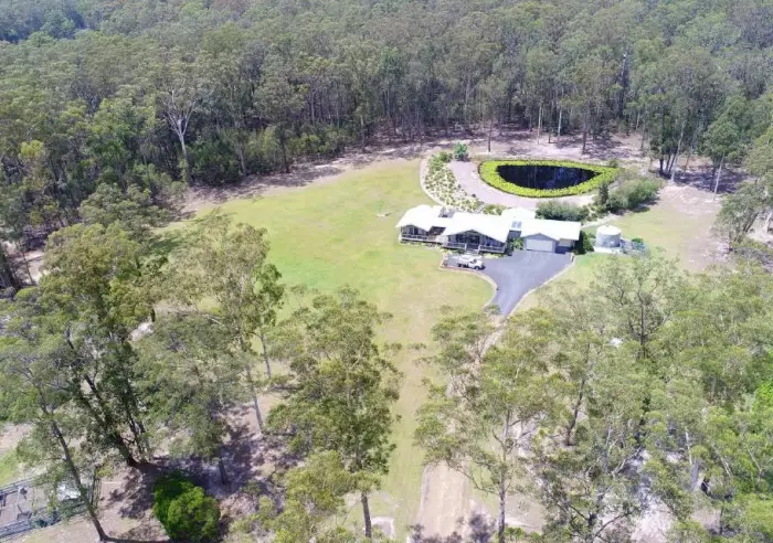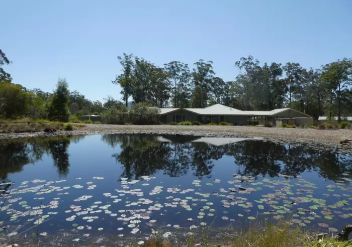 Looking for something just a little bit different? This immaculate home has been specifically designed by Sunergy to take advantage of the northerly aspect and the vendor's requirements. Situated on a tar sealed road and at the end of a quiet cul-de-sac ensuring privacy plus peace and quiet the home has fully insulated walls and ceilings plus tinted glass on the sliding doors. The main home has ducted air conditioning, 1 large bedroom with a big picture window overlooking the lily filled dam plus the main bathroom. The enormous, open plan living area has spacious lounge, the dining area also overlooking the dam, has a built in study area. The family room has a sliding door leading to the guest accommodation and the entertainment deck. Good sized, sunny kitchen with B/Bar, cnr pantry and D/W with sliding door leading to the front verandah. The main home has a DLUG with internal access and remote door plus separate workshop, big enough to be easily adapted to another bedroom. The guest accommodation has been cleverly designed on one side of the entertainment deck giving privacy to both parties and offers 2 big bedrooms and a bathroom. The big dam at the rear of the home has lilies and Silver Perch fish. Set on 19 acres of gently sloping land divided into mown lawn around the home, then timbered at the back of the dam leading to the designated nature corridor at the rear of the property, all accessible by vehicle via the perimeter trail. Just minutes from the highway, shops and 25 minutes Forster beaches/shops. 3 hrs Parramatta. Suit young couple needing accommodation for parents or ideal B & B.