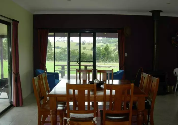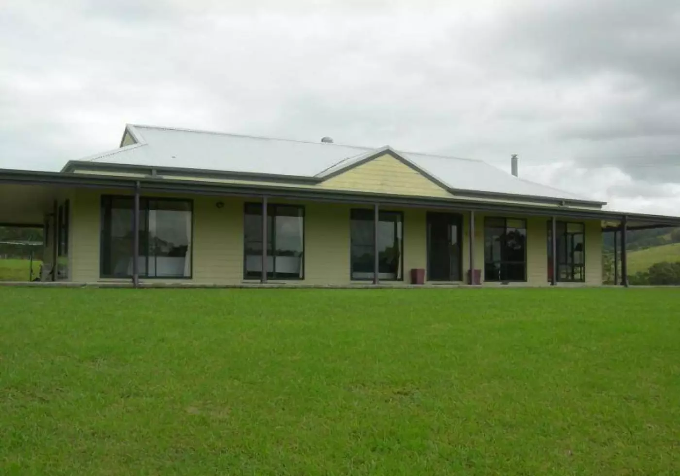 Stunning ranch style home with double carport, insulated walls & ceilings in immaculate condition plus wide verandahs on 4 sides & views from every room. Living areas & bedrooms all have sliding doors opening on to the verandahs maximising cool breezes. Open plan living area has tiled floors to main traffic area, lounge with cosy combustion fire, sliding door plus picture window overlooking 1 of 9 dams. Dining with 2 sliding doors & R/C air conditioning for all year round comfort & adjoins the kitchen with B/Bar, D/W plus WI pantry. 3 double bedrooms all with BIR's & sliding doors, main with ensuite, sliding door plus big picture window. Tasteful pastel colours throughout accentuate the light & airy feel of this lovely home. Good machinery shed 12 x 6 with concrete floor, 2 roller doors, power & water. Good stock yards with race & crush. Demountable S/C 1 bedroom home (needing new roof) would make guest accommodation or teenage retreat. Set on 125 acres of gently undulating to hilly country fenced into 6 large paddocks & 4 small paddocks with 9 dams & several natural waterways, 90% cleared with selected shade trees. Very private & picturesque setting just 18 kms from Nabiac and 9km to highway on no through road.