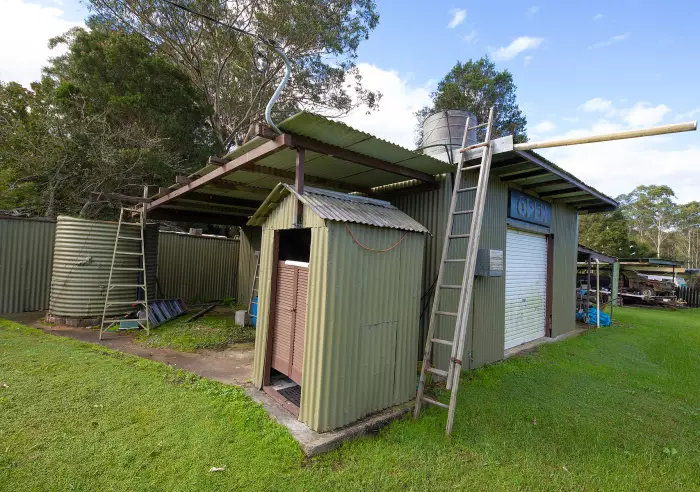 The original dairy has a bedroom, kitchenette, water tank and is comfortable for temporary accommodation. Mains power is connected and there is a shower and toilet attached to the machinery shed.
