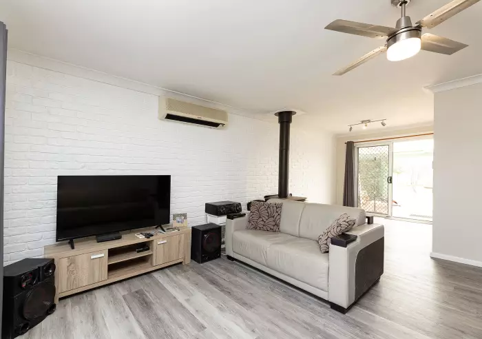 Well presented inside including vinyl timber flooring, combustion fireplace, and reverse cycle air-con. The bedrooms have carpet, ceiling fans, built in robes and there is a nice rear covered pergola, BBQ area overlooking the fenced back yard.