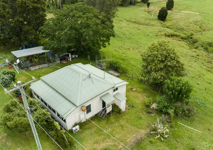 The house sits in an elevated position overlooking scenic views to the rear of the property, there is an underneath storage area, fenced house yard and a single carport with assorted garden shedding.