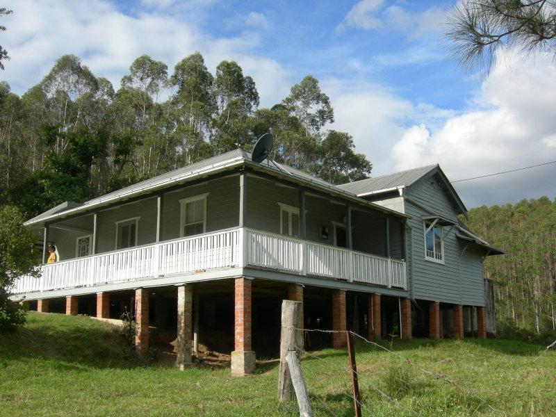 3 bedroom weatherboard older style homestead, large lounge with combustion fire, main bedroom with built-in robe, timber floors, verandahs on 2 sides, tank water, carport, set on rural property, use of house yard only. Pets negotiable. 23 kms from Nabiac (4.8km's of dirt road). School bus at door. Available end March.